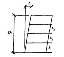 | Суммарные отклонения положения колонн или стен в конструкциях многоэтажных зданий относительно вертикальной линии, проходящей через их центры на уровне основания. | Не более чем n - число этажей, где n>1 |