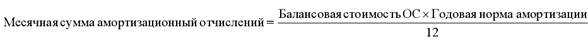 Расчет месячной суммы амортизационных отчислений производится по следующей формуле: