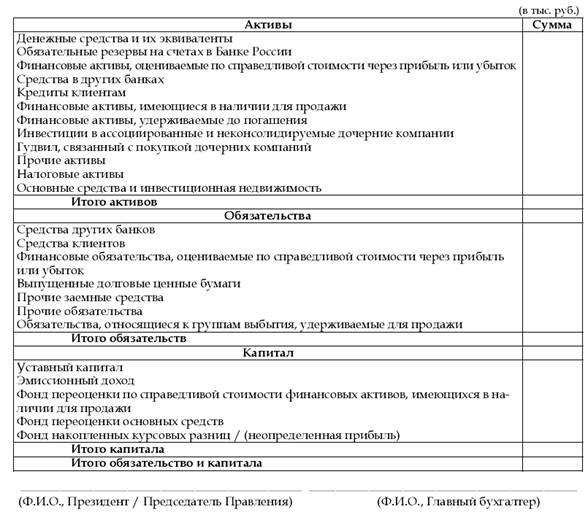 В настоящее время российские коммерческие банки составляют отчетность в соответствии с международными стандартами финансовой отчетности. Бухгалтерская (финансовая) отчетность банков включает: