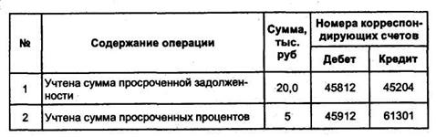 Сделайте необходимые бухгалтерские проводки по просроченному кредиту и процентам.