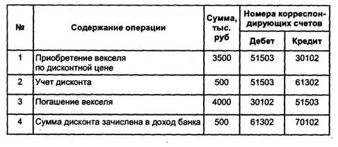 Бухгалтерские проводки по учету векселя в банке отразим в таблице: