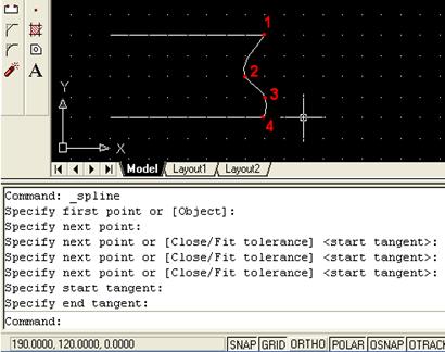 Specify start point of arc: (указываем координаты начала дуги курсором (точка 2) на чертеже либо вводим их вручную);