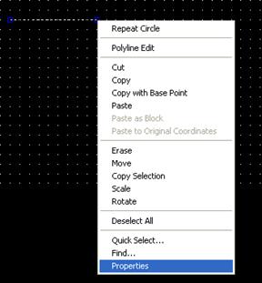 Изменение параметров отрезков и окружностей можно произвести, выделив требуемый объект на чертеже и нажав правую кнопку мыши. В всплывающем меню следует выбрать пункт Properties (Свойства).