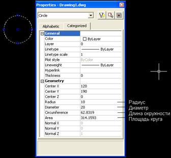 Рис. 4.6. Свойства окружности