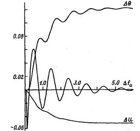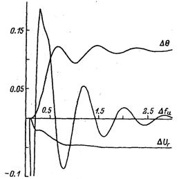 Для подтверждения полученных результатов на рис. 3.9, 3.10 приведены переходные процессы, выполненные с помощью ППП «Модель» при точном моделировании динамических свойств регуляторов и возбудителей. Видно, что при настройках, выбранных по изложенной методике, качество регулирования оказывается именно таким, как предполагалось.
