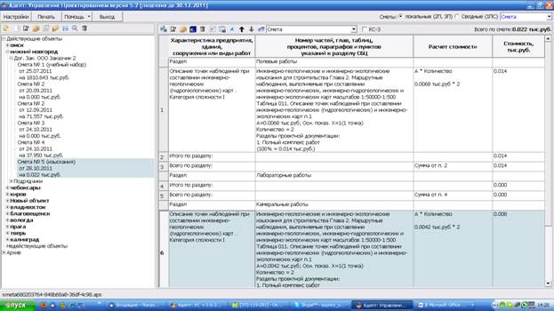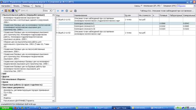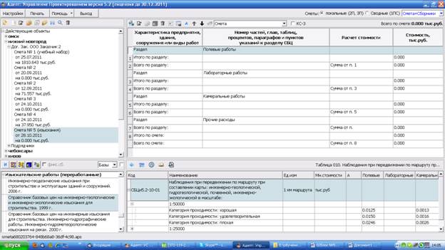 Нажмем создать. Рабочее окно сметы на изыскания уже содержит необходимые разделы Полевые, камеральные, лабораторные работы: