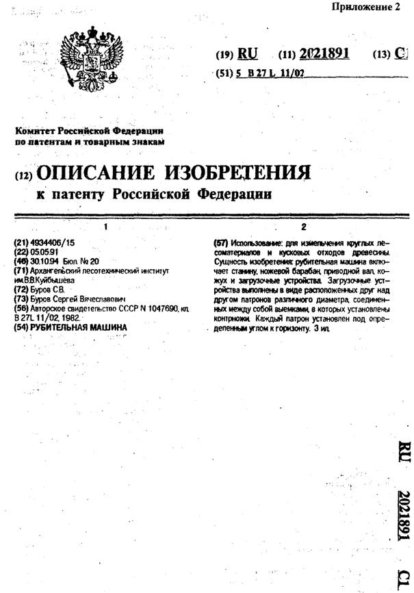 Все эти недостатки (большое количество времени и ограниченность информации) можно устранить, используя поиск, с помощью которого по патентной документации определить тенденцию развития, уровень развития техники и конкретное техническое решение. В патентной документации представлены чертежи, которые позволяют выявить конструктивное решение, отдельные детали, способ их изготовления и сборку узла, т. е. всю "механику" устройства. Патентная документация включает описание изобретения к авторскому свидетельству, патенту или свидетельству на полезную модель (в прил. 1 и 2 представлены образцы патентной документации).