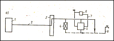 1-источник теплоты, 2-подающий трубопровод теплосети, 3-абонентский ввод, 4-калорифер вентиляционной системы, 5-теплолобменник системы отопления, 6- отопительный прибор, 7-трубопровод системы отопления, 8-система горячего водоснабжения.