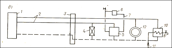 Рис. 6. Принципиальная схема водяной закрытой трехтрубной системы теплоснабжения. 12-технологическая установка промышленного потребителя.