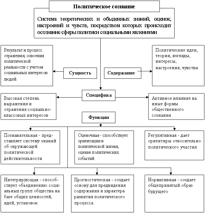 Сущность и содержание политического сознания отражены в следующей схеме.