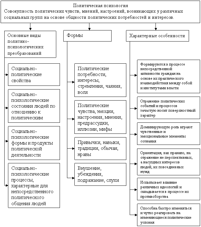 В сжатом виде содержание политической психологии можно представить в следующей схеме.