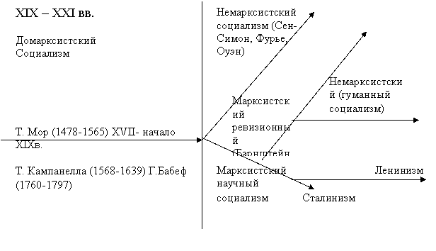 Развитие социалистической идеи прошло долгий и трудный путь. Его можно представить в следующей схеме.