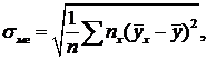 Выборочным корреляционным отношением Y и Х называется отношение межгруппового среднего квадратичного отклонения к общему среднему квадратичному отклонению признака Y, т. е.