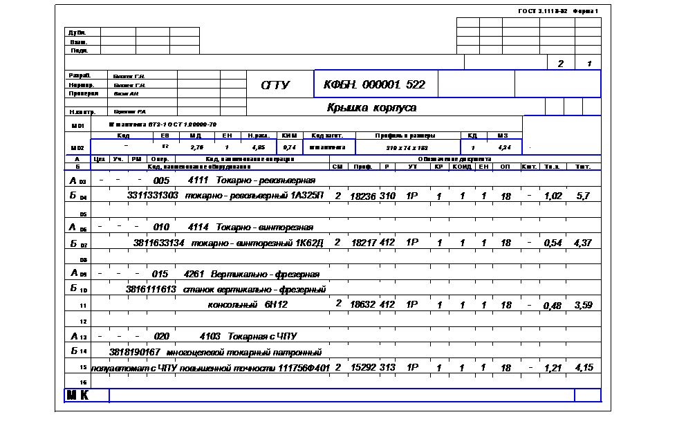 4.1. Разработка и обоснование маршрутного ТП