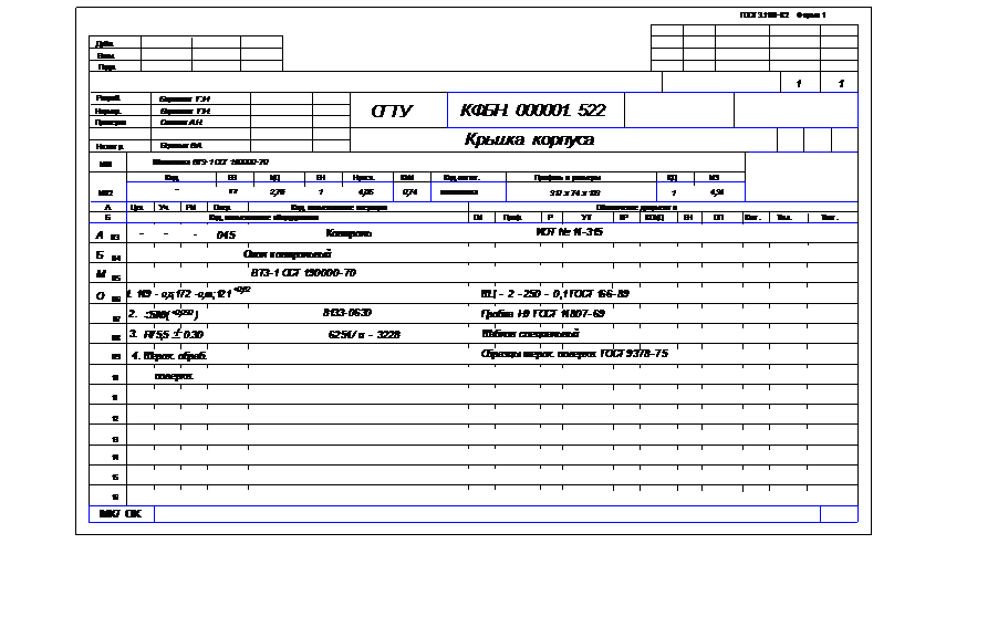 Графическая часть курсового проекта содержит рабочие чертежи детали и заготовки (формат А4-А1), лист операционных эскизов (формат А1).
