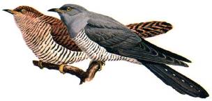 Есть еще одно мнение относительно способа кукушки подкладывать яйца в чужие гнёзда. Считают, что птица не осторожничает, а, наоборот, действует очень нагло. Она внешне – и по контуру и по окраске – похожа на ястреба. Пролетая низко над гнездом, кукушка-«ястреб» пугает птичек, вынуждает их спрятаться в кустах или листве, а сама в это время откладывает яйцо. Говорят ещё, что в откладке яиц самке помогает самец – он пугает или отвлекает хозяев гнезда. Кукушки большей частью откладывают яйца в гнёзда мелких птиц. Но некоторые виды подкидывают их в гнёзда ворон, галок и других довольно крупных птиц. Но в любом случае каждая кукушка специализируется на определённых птицах - на малиновках или горихвостках, пеночках или мухоловках. И яйца у кукушек похожи по форме и по цвету на яйца этих птиц. Что же касается величины яиц – и тут очередной феномен. Кукушка весит граммов 100-120, и её яйцо должно было бы весить граммов 15. А она откладывает яички весом 3 грамма, такие, как у птицы, весящей 10-12 граммов.
