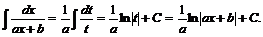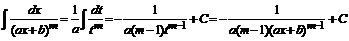 Первые два типа интегралов от элементарных дробей приводятся к табличным подстановкой t = ax + b.
