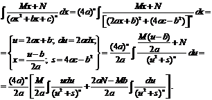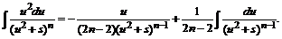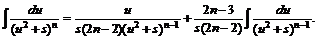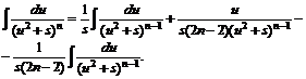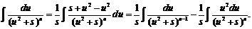 В полученном равенстве первый интеграл с помощью подстановки t = u2 + s приводится к табличному