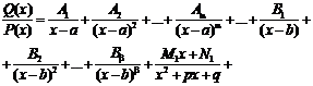 P(x) = (x – a)a…(x – b)b(x2 + px + q)l…(x2 + rx + s)m ), то эта дробь может быть разложена на элементарные по следующей схеме: