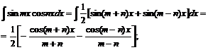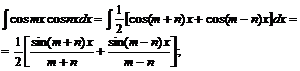 В интегралах произведения синусов и косинусов различных аргументов применяется одна из следующих трех формул: