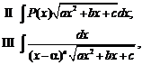 где P(x) – многочлен, n – натуральное число. Причем интегралы II и