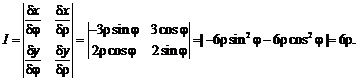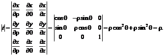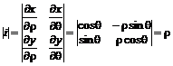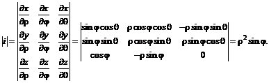 Для представления тройного интеграла в сферических координатах вычислим якобиан