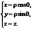 Связь координат произвольной точки Р пространства в цилиндрической системе с координатами в декартовой прямоугольной системе осуществляется по формулам