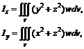 Моменты инерции тела относительно осей координат определяются по формулам