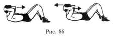 Лежа на спине — руки вверх. Ноги вверх и за голову параллельно полу, пальцами рук обхватить стопы. Удерживать это положение 20—30 с, затем вернуться в исходное положение. Дыхание спокойное. Повторить 4—6 раз с отдыхом 10—15 с между повторениями (рис. 85).
