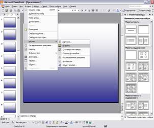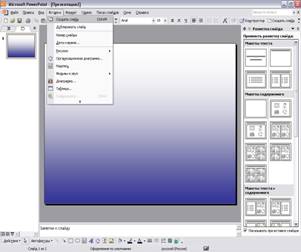 5. Для того чтобы создать еще слайды выбрать: «Вставка – Дублировать слайд». Либо если хотите создать новый слайд: «Вставка – Новый слайд».