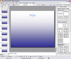 Для создания игры вам нужно приблизительно 10-15 слайдов, но можно и больше, первый слайд титульный, здесь вы пишите название игры.