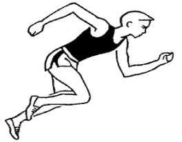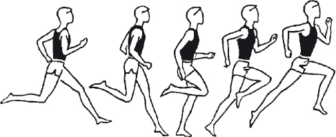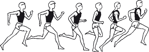 - бегун резко бросается вперед; через 5–6 шагов принимается вертикальное положение тела.