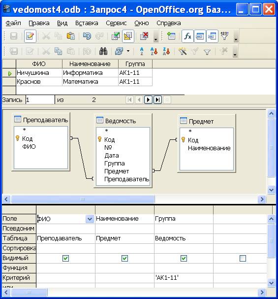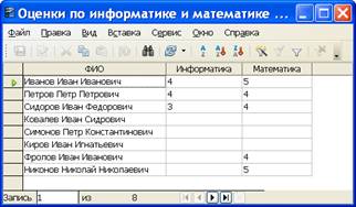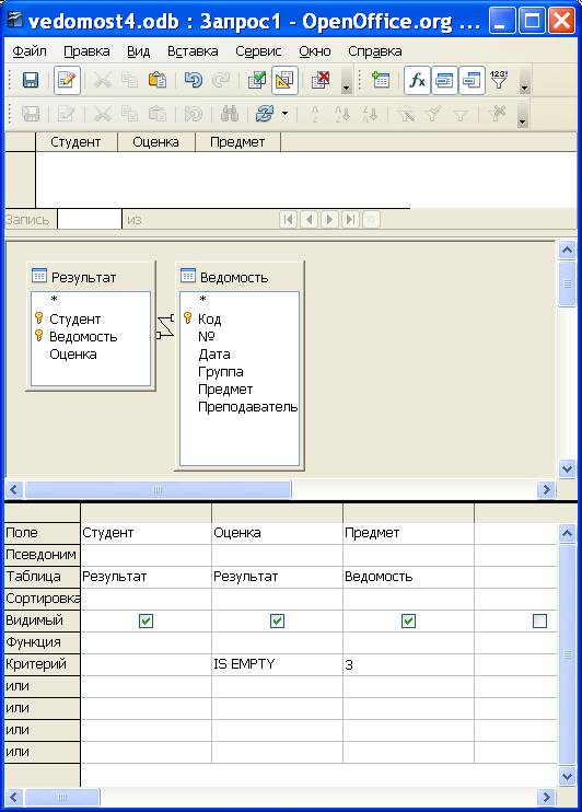 К сожалению, в конструкторе «OpenOffice. org 3.0» в один запрос такую задачу решить не удалось. Подготовим вспомогательный запрос, формирующий список оценок по математике.