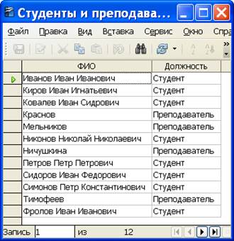 SELECT "ФИО", 'Студент' AS "Должность" FROM "Студент" UNION ALLSELECT "ФИО", 'Преподаватель' AS "Должность" FROM "Преподаватель" ORDER BY "ФИО"