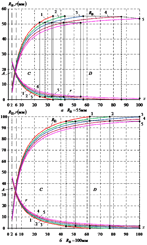 значениями z ³ (24…55) при RB/r ³ (25,06…26,54) (рис. 2, а) и для