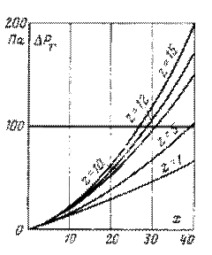 Рис. 3-17. Потери давления в радиаторах с расчетным числом секций.