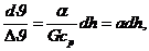 является степенной функцией перепада температуры. При этом дифференциальное уравнение для изменения температуры нагревающейся или охлаждающейся среды, которое выражает отнесенное к единице времени изменение количества теплоты и пропорциональное ему изменение температуры на пути dh шириной, равной единице, имеет вид: