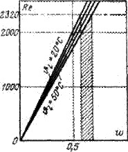 Рис. 3-22. Зависимости числа Re от скорости воздуха w при разных значениях температуры воздуха![]()