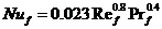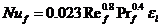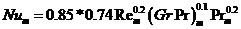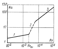 Рис. 3-23. Зависимость числа Nu от числа Re в переходной области между ламинарным течением среды GrPr–I по данным на [9].
