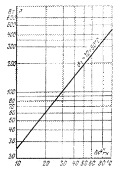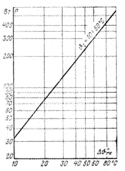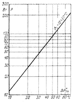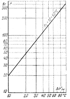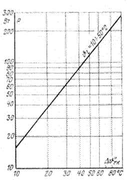 Обозначим потери, отводимые одной секцией радиатора путем конвекции, через Р. Тогда превышение средней температуры масла в радиаторе над средней температурой воздуха в радиаторе, являющееся логарифмической разностью температур, определяется выражением