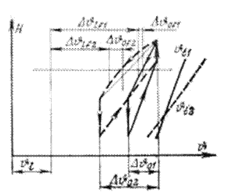 Выше неоднократно упоминалось о самопроизвольно устанавливающемся осевом перепаде температуры масла в обмотке. Под этим понятием подразумевается такая разность температур, которая возникает тогда, когда к обмотке присоединен контур циркуляции с гидравлическим сопротивлением, равным нулю. В действительности, возникшая при заданной реальной системе охлаждения разность температур может быть больше или меньше самопроизвольно устанавливающейся разности температур: меньше, если за счет подъема центра охлаждения увеличить площадь петли давления; больше, если достигаемое таким путем увеличение площади петли давления недостаточно для преодоления потерь давления в гидравлических сопротивлениях, находящихся за пределами обмотки. Для трансформатора с заданными геометрическими размерами, можно, изменяя поверхностную плотность теплового потока, снять зависимость