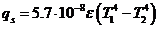 Согласно закону Стефана – Больцмана тело, имеющее термодинамическую температуру T1 и степень черноты е, излучает с единицы поверхности в окружающую среду, имеющую термодинамическую температуру Т2, поток излучения с поверхностной плотностью