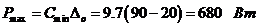 Определим тепловой поток радиаторов без стальных листов при конвективной теплоотдаче: