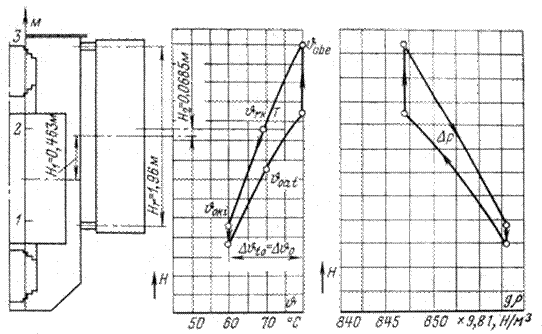 . На рис. 3-2 приведены диаграммы распределения температуры и удельного веса в контуре циркуляции, которые позволяют найти гравитационное давление, поддерживающее циркуляцию масла. Из данных измерений находим: