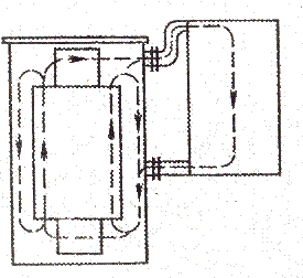 Нагретое масло в точке С входит в радиатор, где в единицу времени отдается окружающей среде количество теплоты Р. В результате масло охлаждается, его плотность возрастает и в точке D оно выходит из радиатора. Охлажденное масло в точке А вновь поступает в обмотку и процесс повторяется.