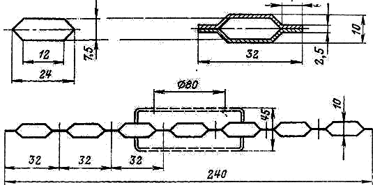 Задан радиатор высотой 2440 мм. Секция радиатора имеет семь масляных каналов, поперечное сечение которых представляет собой удвоенную трапецию (рис. 3-11). Площадь сечения каждого канала