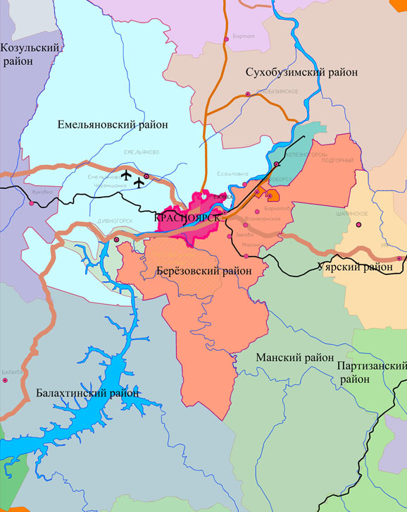 Рис.2.1. Положение Березовского района в системе Красноярского края.
