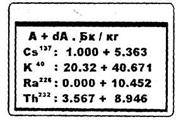 1. Погрешность измерения пробы "нулевой активности" (Δ0) - характеристика измерительной установки, представляющая собой полную абсолютную (Р = 0,95) доверительную погрешность измерения активности данного радионуклида за данное время при измерении фона установки как пробы. Удвоенное значение погрешности измерения пробы "нулевой активности" за 3600 сек. равно величине "минимальной измеряемой активности".