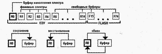 На рис.4 показана схема расположения, использования буферов памяти, а также операции по перемещению спектров в памяти.