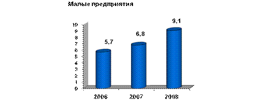 Доля численности работников списочного состава, работающих в секторе МП, в общей среднегодовой численности занятых в экономике республики за 2008 г. составила более 10,8 %, при значении показателя в 2007 г. 7,8 %.